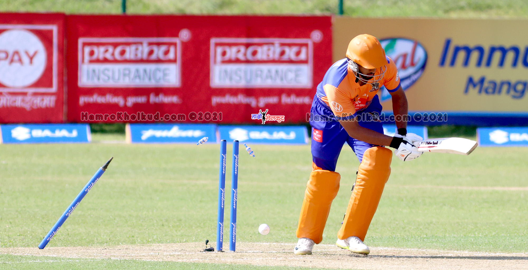 तीव्र गातिका बलर तथा कप्तान सोमपाल कामीले पहिलो ओभरमै दुई विकेट लिँदै चितवनलाई सानदार सुरुवात दिलाएका छन् । ओपनर आसिफ शेखलाई दोस्रो बलमा सोमपालले शून्यमा क्याच गराएका थिए । आसिफ सोमपालको बलमा टप एज लागेर करिम जान्नतबाट क्याच आउट हुँदै गोल्डेन डक पेभिलिएन फर्के । अन्तिम बलमा सोमपालले रयानखान पठानलाई ४ रनमा बोल्ड आउट गर्दै सानदार सुरुवात दिलाए ।