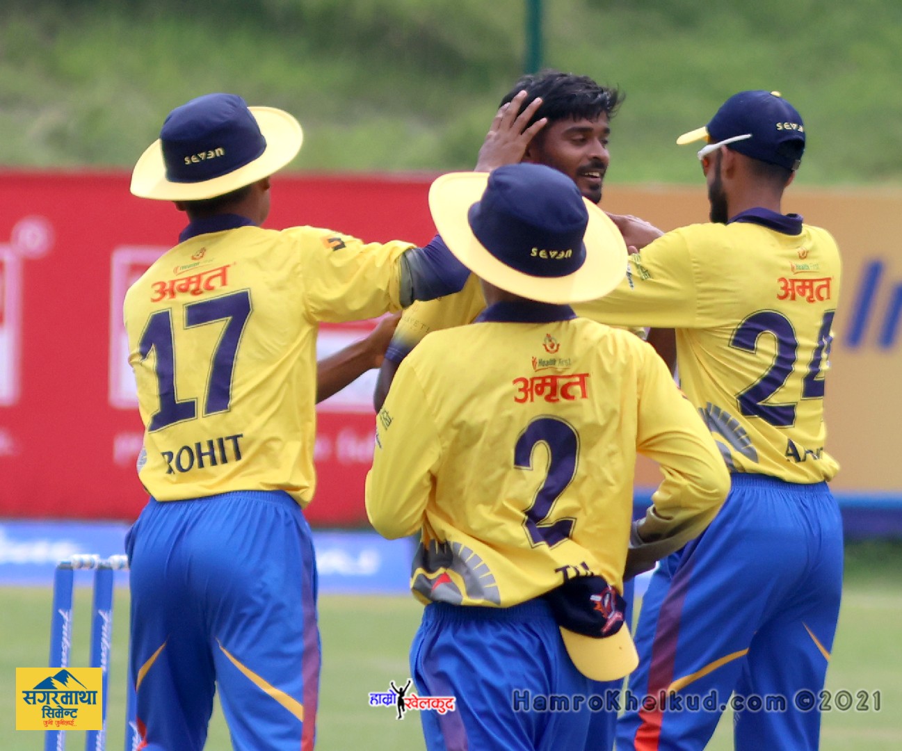 टियु मैदानमा टस जितेर पहिला ब्याटिङ थालेको पोखरा १०.१ ओभरमा ६५–७ को अवस्थामा वर्षाको कारण खेल रोकिएको थियो । त्यसपछि खेल हुन नसक्दा अंक बाँड्नु परेको थियो । संकटको अवस्थामा पुगेको पोखरालाई वर्षा ठूलो राहत बन्यो । भैरहवाको लागि घातक बलिङ गरेका दुर्गेशको प्रदर्शन भने केहि ओझेलमा पर्यो ।
