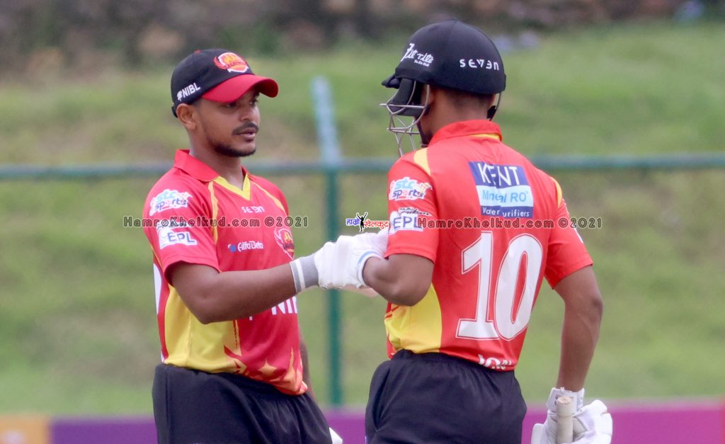 अन्तिम बलमा ७ रन आवश्यक पर्दा कप्तान शरदले आफूले खेलेको पहिलो बलमा नै छक्का प्रहार गरेका थिए । भैरहवाका लागि श्रीलंका पूर्व कप्तान समेत रहेका उपुल थरंगा ४४ बलमा ६ चौका र ३ छक्का सहित सर्वाधिक ६७ रनमा अविजित रहे । कप्तान शरद १ बलमा १ छक्का सहित ६ रनमा अविजित रहे ।