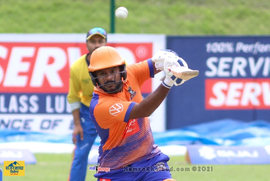 ललितपुरका आजमतुल्लाह ओमरजाइ २४ बलमा ७ छक्का ५८ सहित रनमा अविजित रहे । उनले २१ बलमा अर्धशतक पूरा गरेका थिए । ओपनर सान्दुन विराक्कोडीले ४३ बलमा १० चौका र ३ छक्का सहित सर्वाधिक ७३ रनको योगदान दिए । कप्तान कशुल भुर्तेल १७ बलमा ४ चौका र २ छक्का सहित ३२ रनमा आउट भए ।
