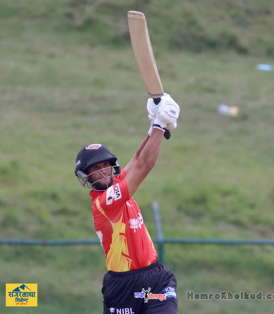 ललितपुरका आजमतुल्लाह ओमरजाइ २४ बलमा ७ छक्का ५८ सहित रनमा अविजित रहे । उनले २१ बलमा अर्धशतक पूरा गरेका थिए । ओपनर सान्दुन विराक्कोडीले ४३ बलमा १० चौका र ३ छक्का सहित सर्वाधिक ७३ रनको योगदान दिए । ओमरजाइले ब्यक्तिगत २ रनमै जीवनदान पाएका थिए । स्पिनर वसन्त रेग्मीको १४ औं ओभरको तेस्रो बलमा डिप मिडविकेटमा सुमित महर्जनले आजमतुल्लाह २ रनमा क्याच ड्रप गरेका थिए । जुन विराटनगरलाई ठूलो भारी पर्यो ।