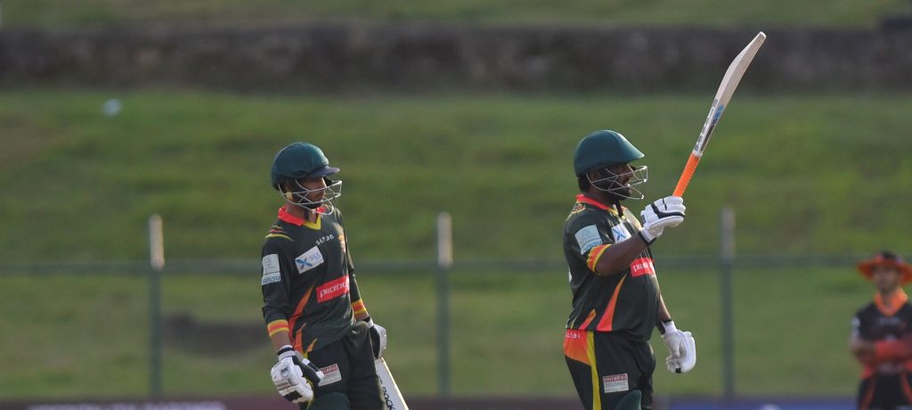 ओपनर ईशान पाण्डेलाई शून्यमा गुमाएपनि दोस्रो विकेटका लागि भीम र शाहजादले १ सय २२ रनकोे अविजित शतकीय साझेदारी गर्दै जित पक्का गराए । भीमले केज्रिक विलियम्सलाई छक्का प्रहार गर्दै अर्धशतक पूरा गरेका थिए । पोखराका विक्रम सोबले एक विकेट लिए ।