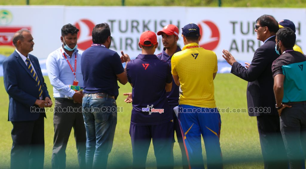 टियु मैदानमा बिहान सामान्य वर्षा भएको थियो । त्यसपछि मैदानमा घाम लागेपनि खेल हुन नसकेको हो । दुबै टोलीका खेलाडीले केहि समय मैदानमा अभ्यास गरेका थिए । खेल नुहने भएपछि मैदान छाडेका छन् । ओभर घटाएर खेल हुने सम्भावना देखिएको थियो । तर भिजेको आउटफिल्डको कारण खेल हुन सकेन ।