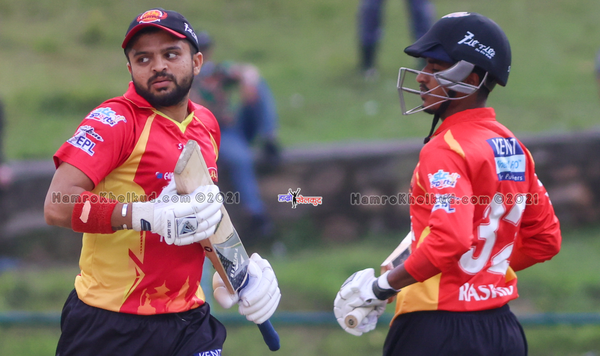 तीव्र गतिका बलर कमलसिंह ऐरीको दोस्रो ओभरको दोस्रो बलमा कप्तान कुशल भुर्तेल करिम जन्नतबाट १ रनमा क्याच आउट हुन पुगेका थिए । तेस्रो ओभरको तेस्रो बलमा ओपनर सान्दुन विराक्कोडी जन्नतको बलमा कट एण्ड बोल्ड आउट हुन पुगे । कमलले सन्दीप जोरालाई भीम सार्कीबाट ४ रनमा क्याच आउट हुँदा ललितपुर ३.३ ओभरमा २५–३ को कमजोर अवस्थामा थियो ।