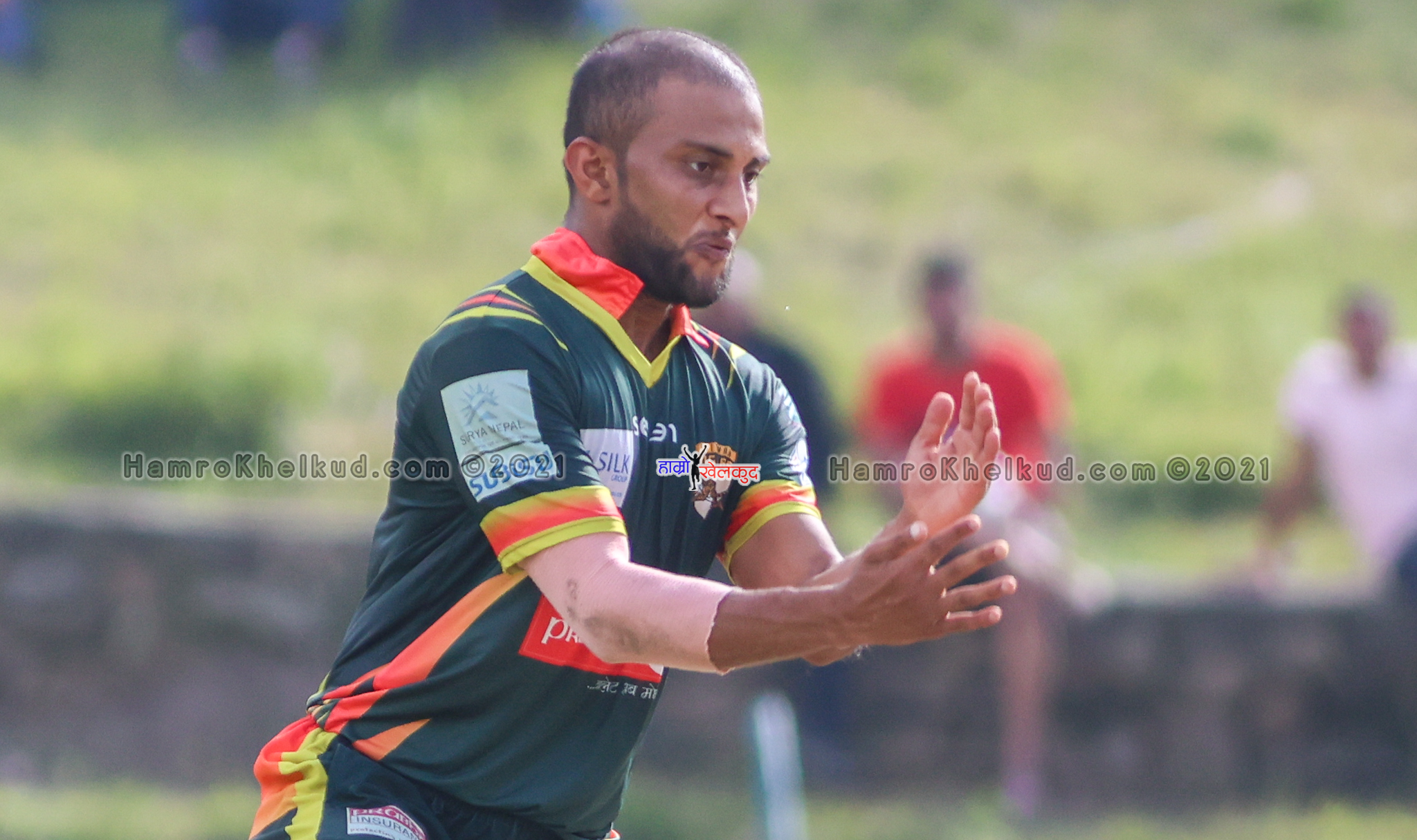 ललितपुरका रिजन ढकालले २ ओभरमा ११ रन खर्चेर २ विकेट लिए । आजमतुल्लाह ओमरजाईले २ र योगेन्द्रसिंह कार्कीले १ विकेट लिए ।