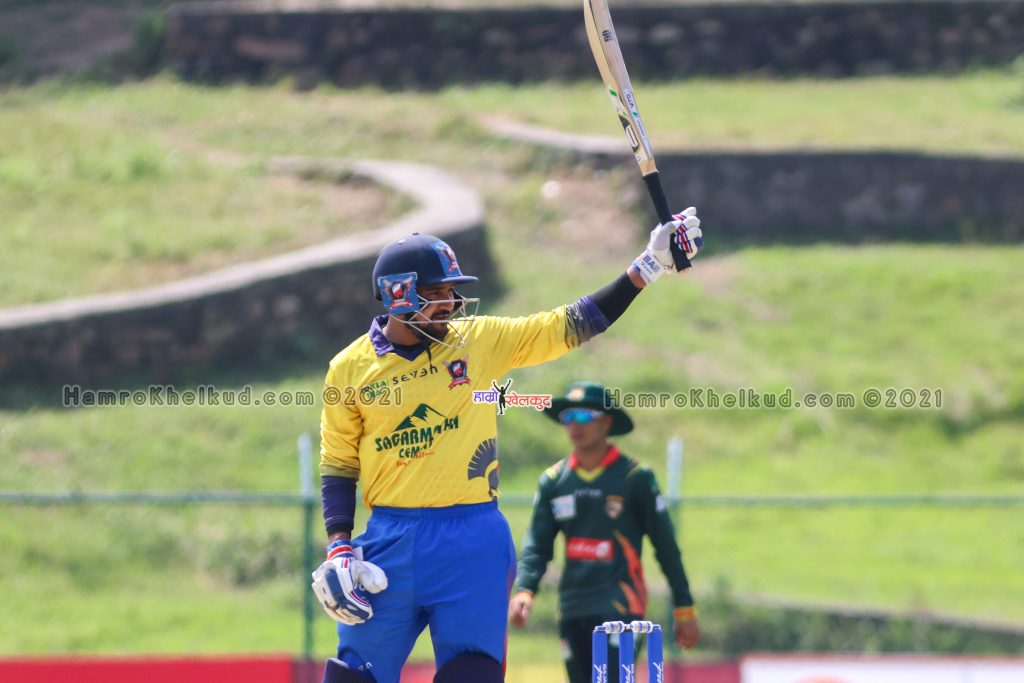 त्यसअघि टियु क्रिकेट मैदानमा टस जितेर पहिला ब्याटिङ रोजेको चितवनले निर्धारित २० ओभरमा ८ विकेट गुमाउँदै १ सय ६४ रन बनाएको थियो । चितवनका करिम जन्नतले ३७ बलमा १ चौका र २ छक्का सहित सर्वाधिक ३५ रन बनाए । ओपनर मोहम्मद शाहजाद २४ बलमा ३ चौका र २ छक्का ३२ रनमा आउट भए । तल्लोक्रममा शेकुगे प्रसन्नाले ११ बलमा ३ छक्का सहित २४ रन बनाउँद्यै आउट भए । दीलिप नाथ ९ बलमा २ छक्का सहित १३ रनमा आउट भए ।
