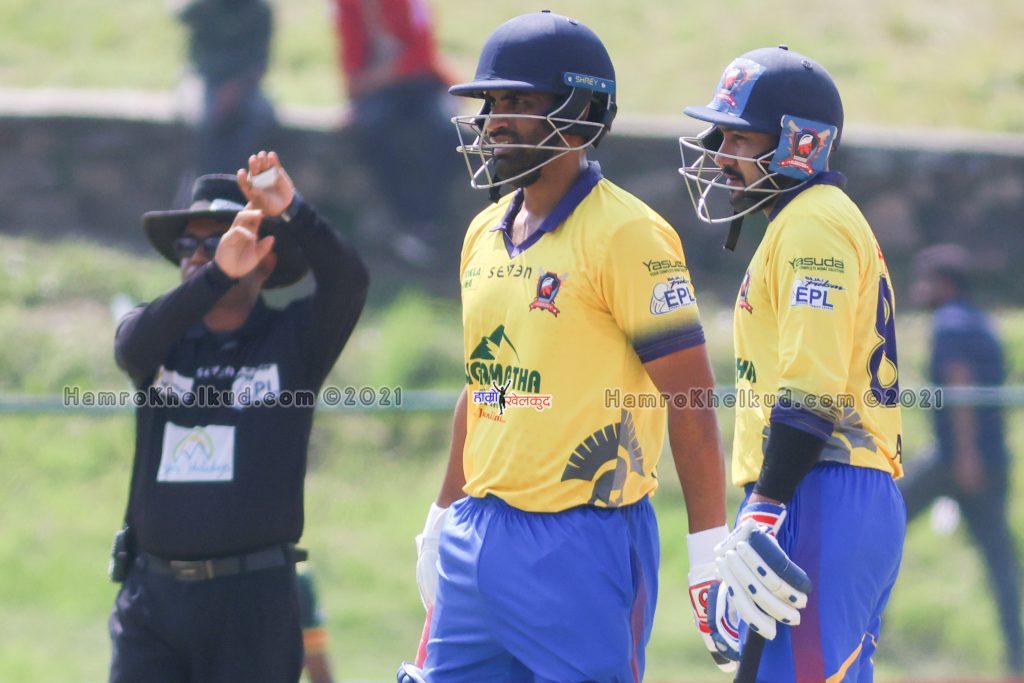 जितको लागि १ सय ६५ रनको विजयी लक्ष्य पछ्याएको भैरहवाले १७.५ ओभरमा ४ विकेट गुमाउँदै पूरा गर्यो । भैरहवाका ओपनर प्रदीप ऐरीले ४३ बलमा ८ चौका र ३ छक्का सहित सर्वाधिक ७२ रनको योगदान दिए । प्रदीपको यो इपिएल करिअरको सर्वाधिक उच्च प्रदर्शन हो । यसअघि प्रदीको उत्कृष्ट प्रदर्शशन पहिलो संस्करणको इपिएलमा ५५ रन बनाएको थियो । प्रदीपले नवौं ओभरको चौथो बलमा फाइन लेगमा तीव्र गतिका बलर गौतम केसीलाई छक्का प्रहार गर्दै २८ बलमा अर्धशतक पूरा गरेका थिए ।
