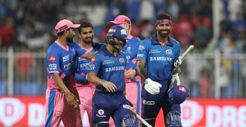 जितको लागि ९१ रनको सामान्य विजयी लक्ष्य मुम्बईले ८.२ ओभरमा २ विकेट गुमाउँदै पूरा गर्यो । मुम्बईका ईशान किशन २५ बलमा ५ चौका र ३ छक्का सहित ५० रनमा अविजित रहे । कप्तान रोहित शर्मा २२ र सूर्यकुमार यादव १३ रनमा आउट भए । राजस्थानका मुस्ताफिजुर रहमान र चेतन सकारियाले १–१ विकेट लिए ।