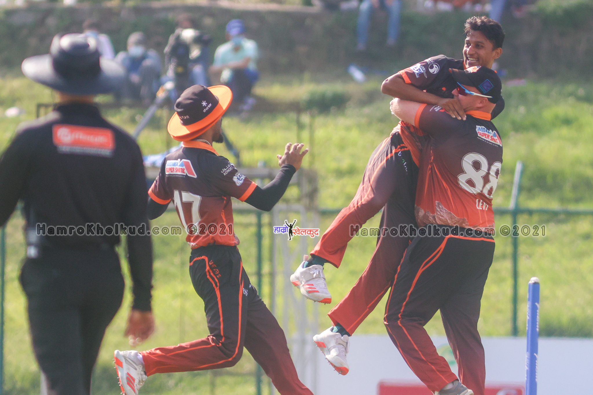 त्यसअघि टियु क्रिकेट मैदानमा टस हारेर पहिला ब्याटिङ थालेको पोखरा १७.५ ओभरमा १ सय ११ रनमा अल आउट भएको थियो । पोखराका असेला गुणरत्नेले २४ बलमा ३ चौका र १ छक्का सहित सर्वाधिक ३४ रनको योगदान दिए । ओपनर रिचार्ड लेभीले १५ बलमा ५ चौका सहित २६ रनमा क्याच आउट भए ।