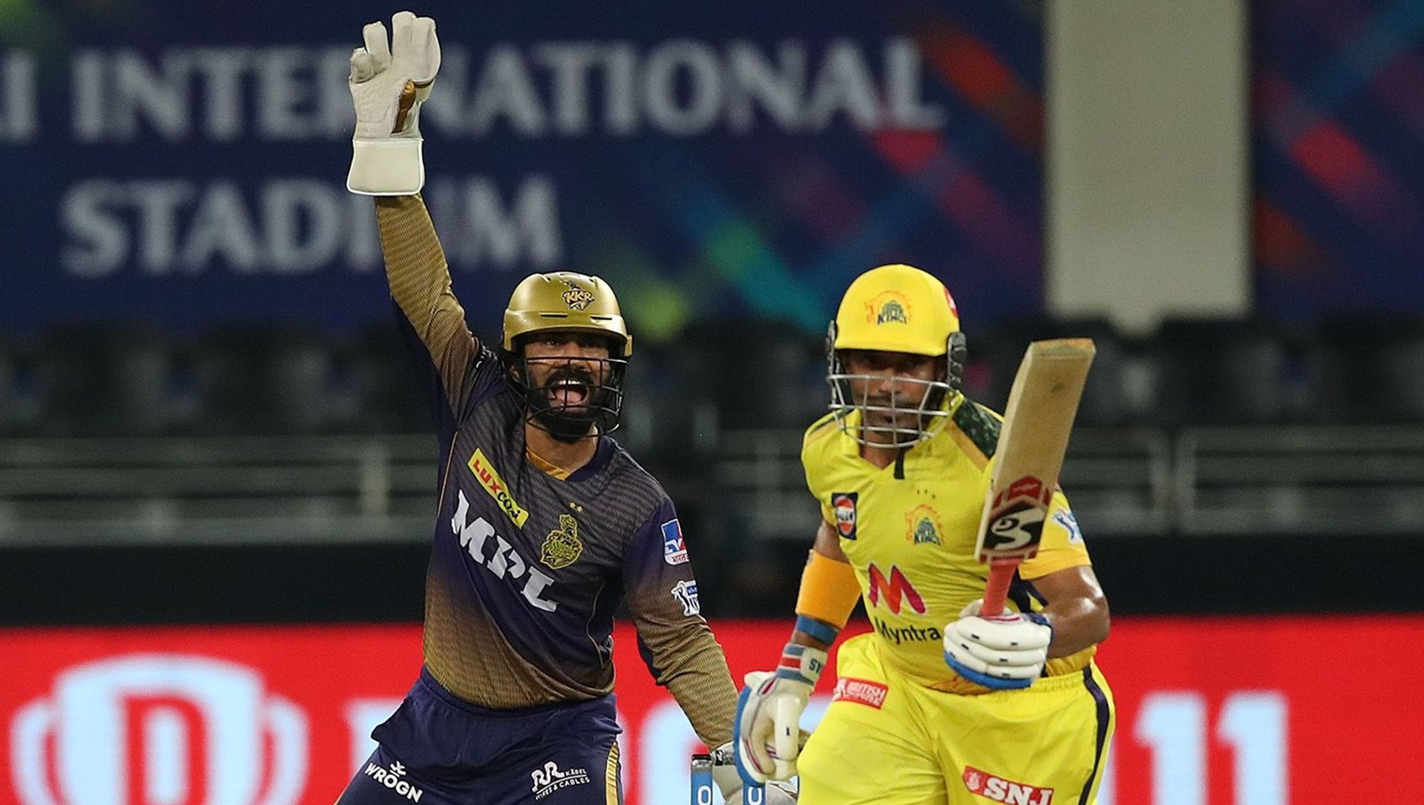 चेन्नईलाई ओपनर ऋतुराज गायकवाड र डु प्लेसिसले पहिलो विकेटका लागि ८.१ ओभरमा ६१ रनको साझेदारी गर्दै राम्रो सुरुवात दिलाएका थिए । ऋतुराजलाई स्पिनर सुनिल नारायणले शिवम माभीबाट ३२ रनमा क्याच गराउँदै साझेदारी तोडेका थिए । ऋतुराजले २७ बलमा ३ चौका र १ छक्का प्रहार गरे ।