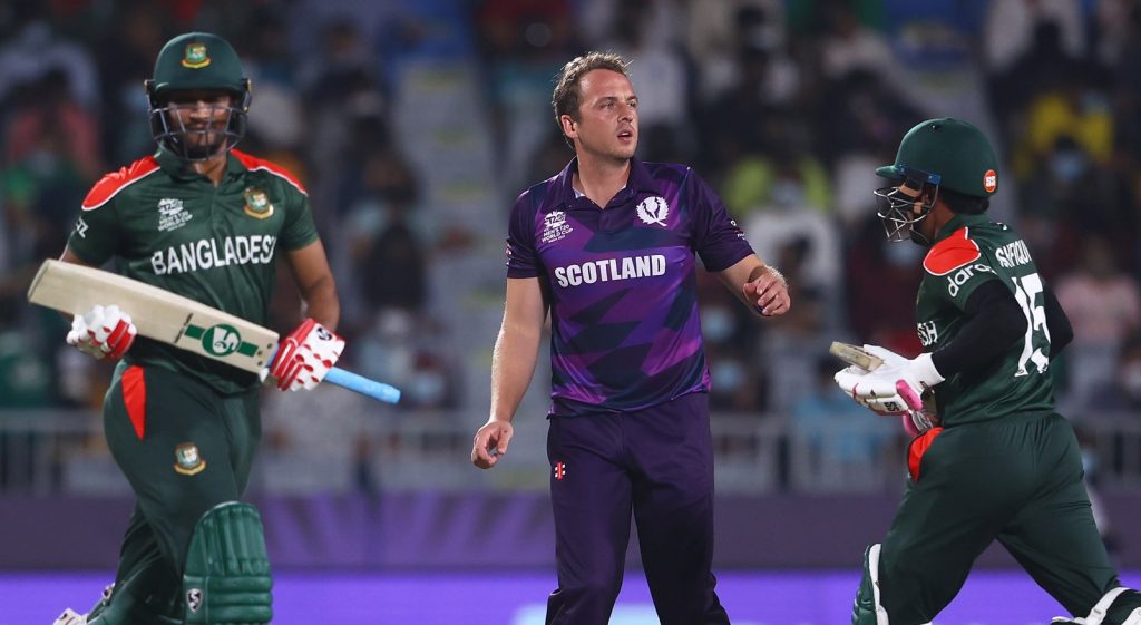 एजेन्सी – आइसीसी टि२० विश्वकप अन्तर्गत पहिलो चरणको समूह बी मा स्कटल्यान्डले बंगलादेशलाई पराजित गरेको छ । ओमानस्थित अल अमरेत मैदानमा ६ रनको जित दर्ता गर्दै स्कटल्यान्डले सानदार सुरुवात गरेको हो ।