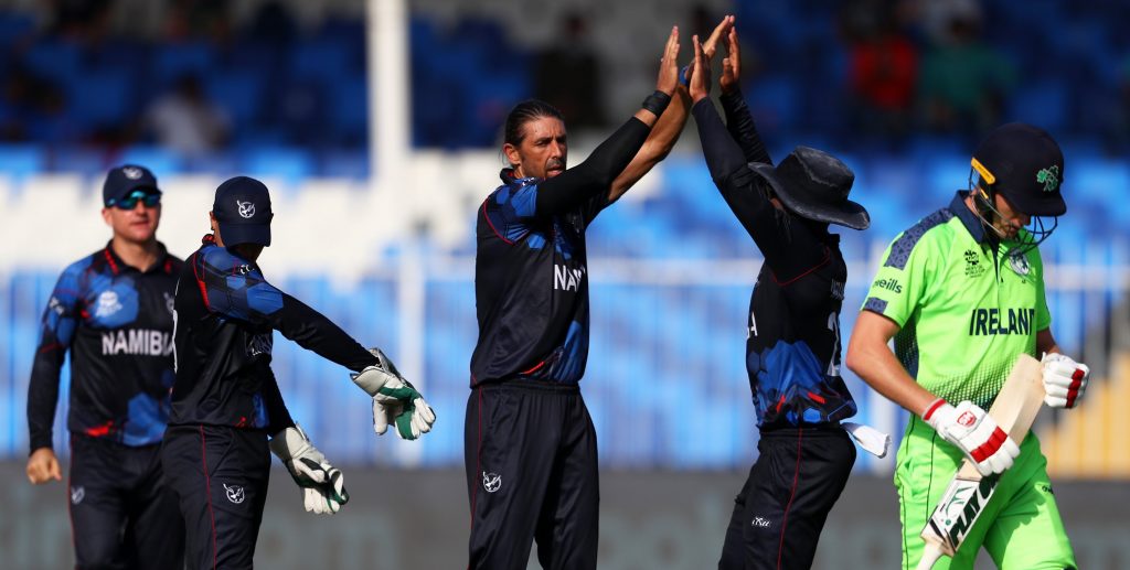 जितको लागि १ सय २६ रनको सामान्य विजयी लक्ष्य पछ्याएको नामिबियाले १८.३ ओभरमा २ विकेट गुमाउँदै पूरा गर्यो । नामिबिया जितमा कप्तान गेरहार्ड इरास्मस ४९ बलमा ३ चौका र १ छक्का सहित सर्वाधिक ५३ रनमा अविजित रहे । डेविड विसे १४ बलमा १ चौका र २ छक्का सहित २८ रनमा अविजित रहे । ओपनर क्रेग विलियम्स १६ बलमा ३ चौका सहित १५ रनमा क्याच आउट भएका थिए । आयरल्यान्डका कर्टिस क्याम्फरले ३ ओभरमा १४ रन खर्चेर २ विकेट लिए ।