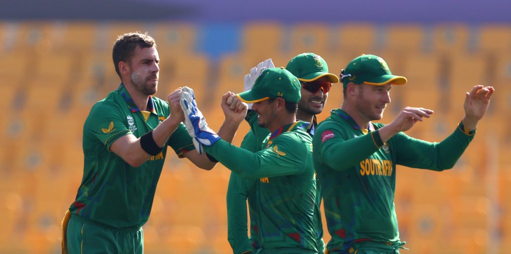 दक्षिण अफ्रिका कागिसो रबाडाले ४ ओभरमा २० रन खर्चेर सर्वाधिक ३ विकेट लिए । अर्का तीव्र गतिका बलर एनरिच नोर्कियाले ३।२ ओभरमा ८ रन खर्चेर ३ विकेट लिए । स्पिनर तबरेज शाम्सीले ३ ओभरमा १४ रन खर्चेर २ विकेट लिए । ड्वेन प्रिटोरियसको नाममा १ विकेट रह्यो ।