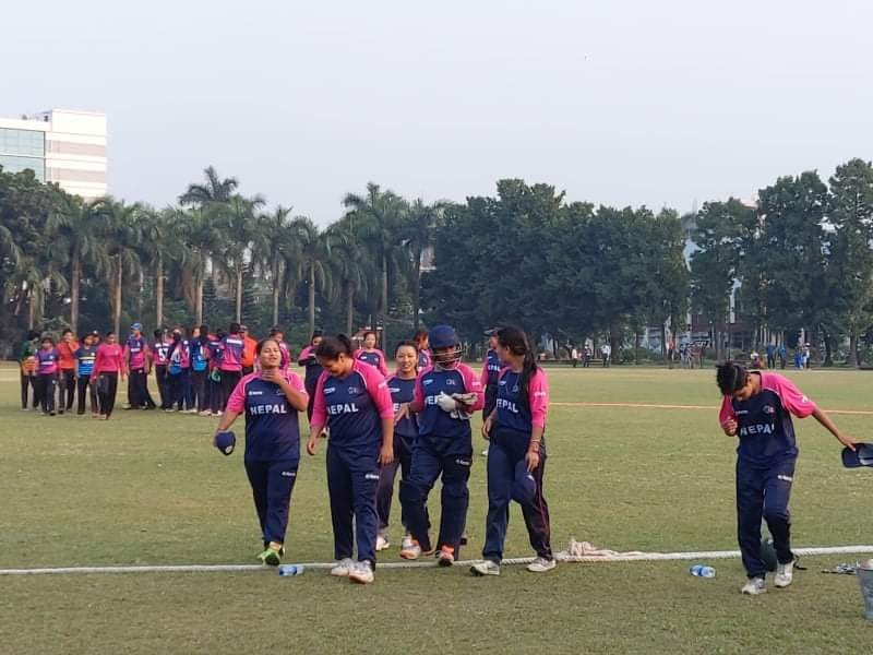 ढाकामा टस जितेर पहिला ब्याटिङ थालेको नेपाली महिला टोलीले निर्धारित २० ओभरमा ६ विकेट गुमाउँदै कुल ७२ रन बनाएका थिए । नेपालको लागि कविता जोशीले ३९ बलमा १ चौका सहित सर्वाधिक २३ रनको योगदान दिइन् । ओपनर काजल श्रेष्ठ २० बलमा २ चौका सहित १२ र सीता राना मगर ७ रनमा आउट भएका थिए । यी दुबै ओपनर रन आउट हुन पुगे ।