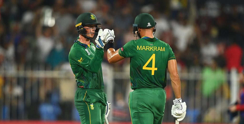 युवा ब्याटर एडेन माक्ररम २५ बलमा २ चौका र ४ छक्का सहित ५२ रनमा अविजित रहे । तेस्रो विकेटका लागि डुसेन र एडेन माक्ररमले ५२ बलमा १ सय ३ रनको उत्कृष्ट अविजित शतकीय साझेदारी गरेपछि दक्षिण अफ्रिकाले बलियो योगफलमा पुगेको हो ।