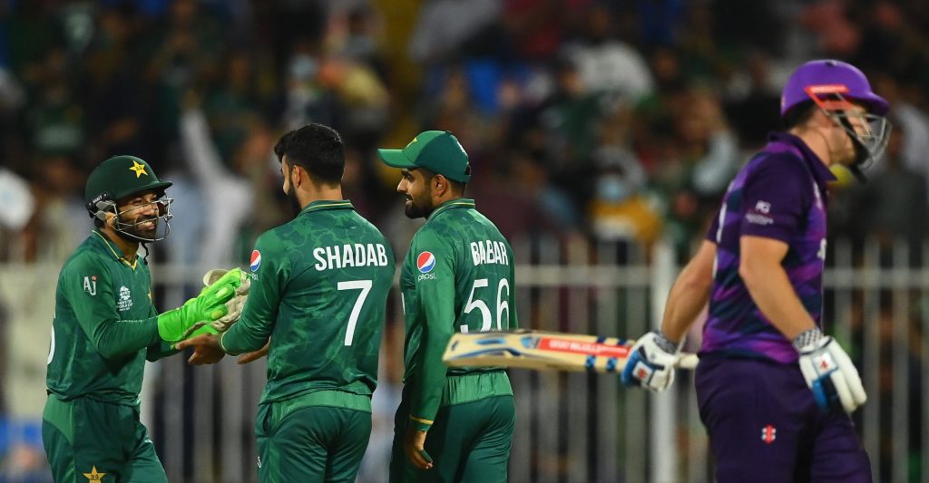 दशौं ओभरको चौथो बलमा क्रिस ग्रीव्सले फखार जमानलाई ८ रनमा क्याच आउट गराए । त्यसपछि मैदान छिरेका मोहम्मद हफिजले १९ बलमा ४ चौका र १ छक्का सहित ३१ रन बनाउँदै आउट भए । रिजवानलाई शफ्यान शरीफले एलबीडब्लू आउट गरेका थिए । आसिफ अली ५ रनमा अविजित रहे । स्कटल्यान्डका क्रिस ग्रीव्सले ४ ओभरमा ४३ रन खर्चेर २ विकेट लिए । हम्जा ताहिर र शफ्यान शरीफले १–१ विकेट लिए ।