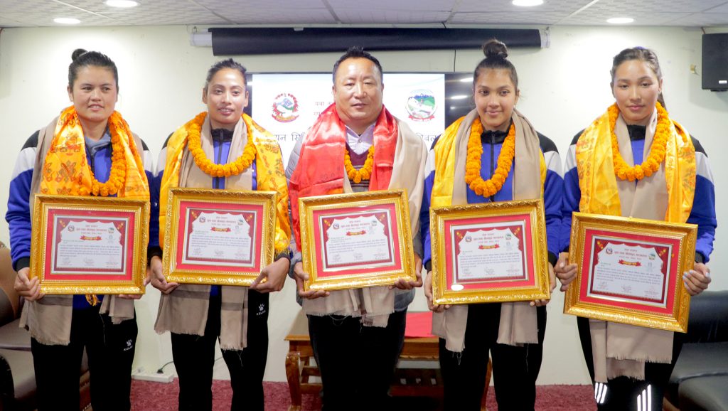 प्रदेश खेलकुद मन्त्रालयले टोलीकी कप्तान म्याग्दीकी अरुणा शाही, तनँहुकी उषा भण्डारी, बागलुङकी साफिया पुन र नवलपुरकी शान्ती कुमारी थारुलाई नगद ५०-५० हजार रुपैँया र सम्मान पत्रले सम्मान गरेको हो ।