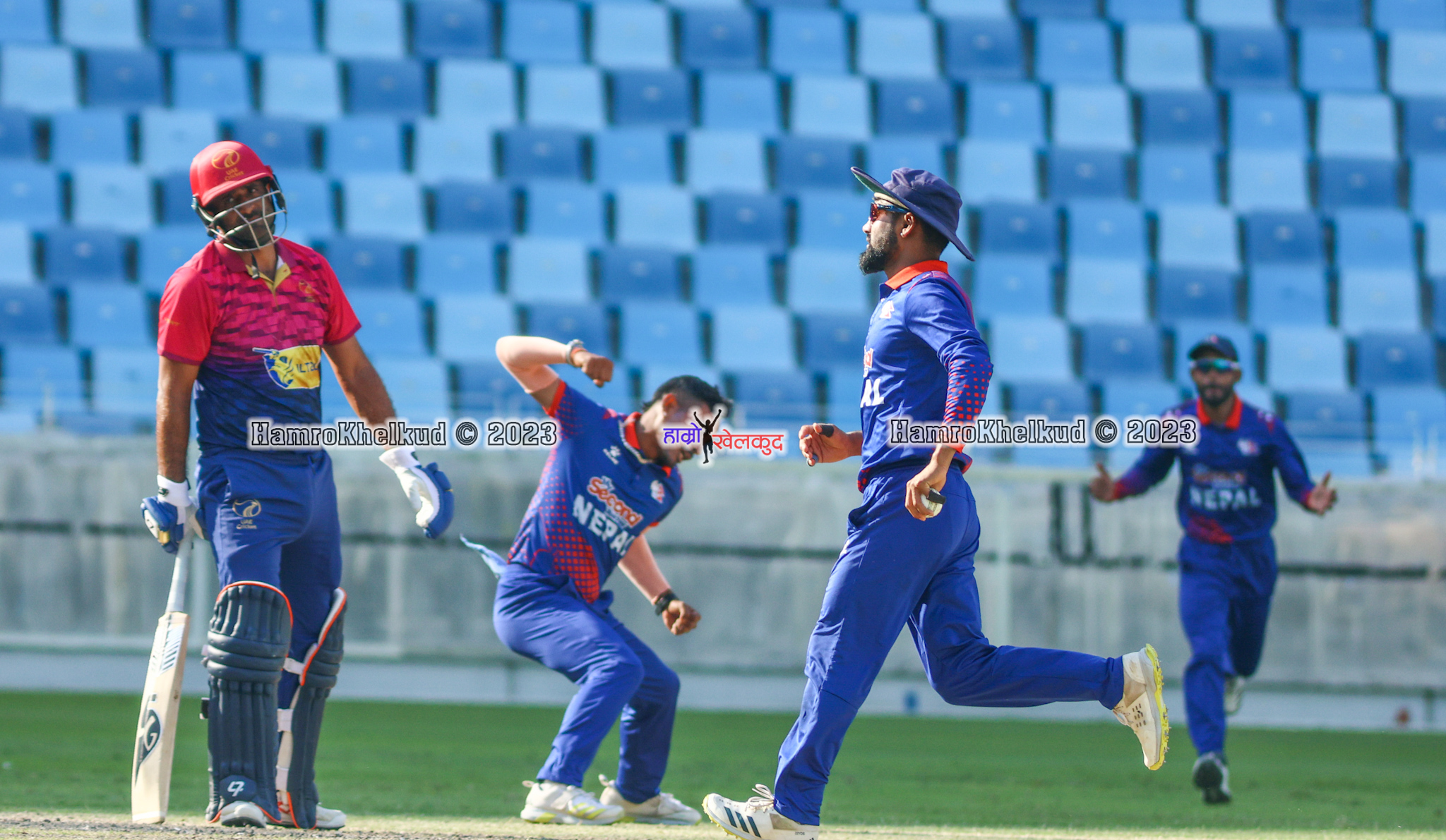 त्यसअघि दुबई इन्टरनेशनल क्रिकेट स्टेडियममा टस जितेर पहिला ब्याटिङ रोजेको नेपालले निर्धारित ५० ओभरमा ८ विकेट गुमाउँदै २ सय २९ रन बनाएको थियोा । नेपालका भीम सार्कीले ९९ बलमा ७ चौकासहित सर्वाधिक ७० रनको योगदान दिए ।