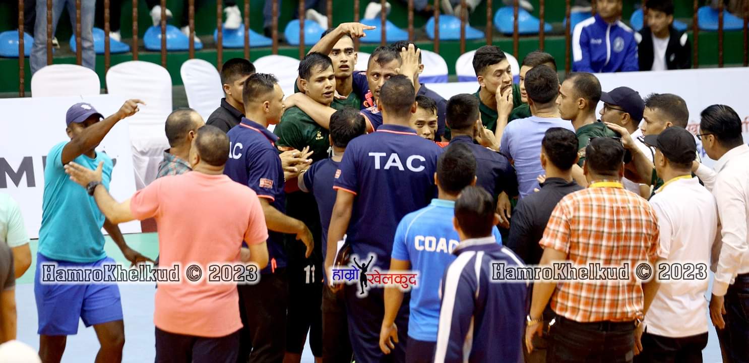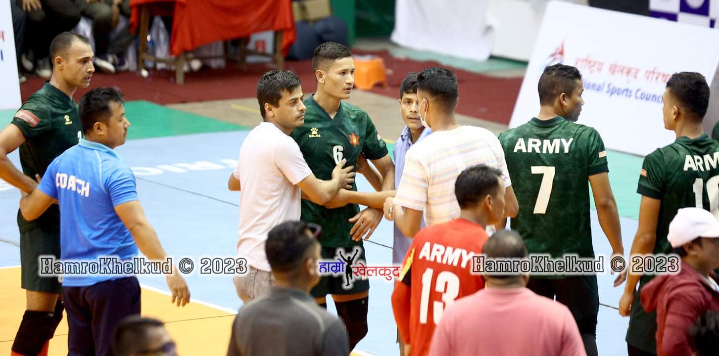 त्यसअघि बिना जर्सीमा भएका आर्मीका ब्यक्तिले समर्थकलाई खोज्दै पिट्न समेत खोजेका थिए । आर्मीले अनुशासनको कुनैपनि मर्यादा कायम गरेको थिएन । कोर्टमा गण्डकीका खेलाडीसँग भलिबलमा भिड्नुपर्ने आर्मीका खेलाडी समर्थकलाई नै पिट्न खोजेका थिए ।