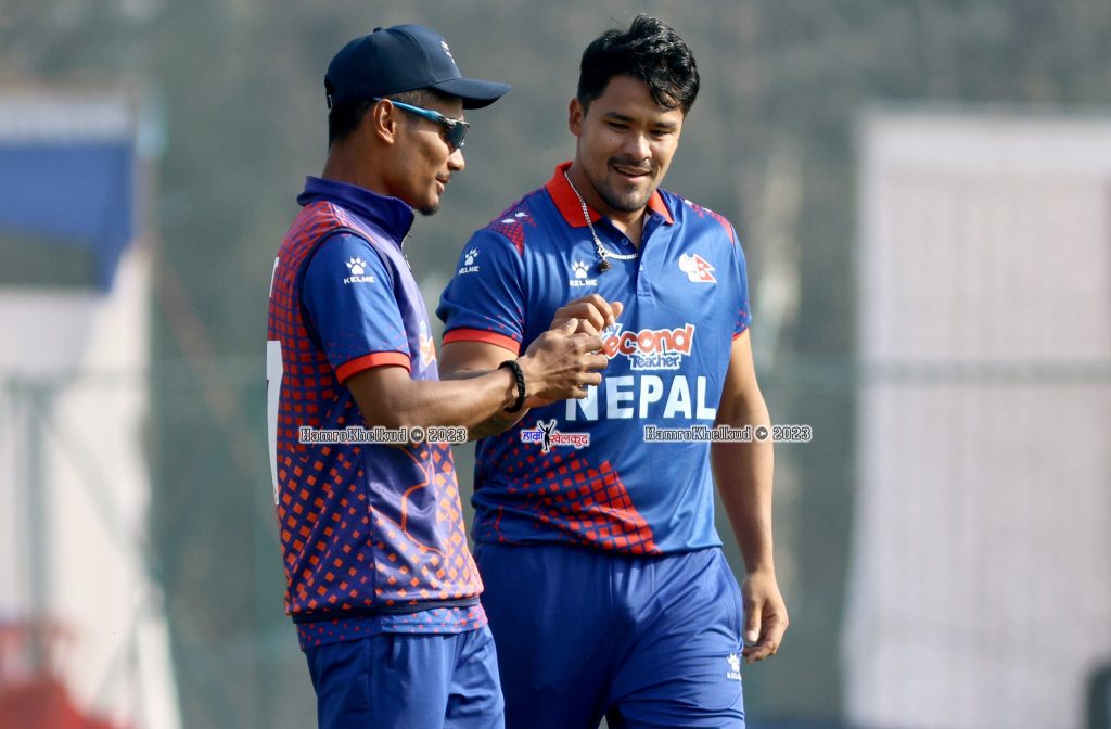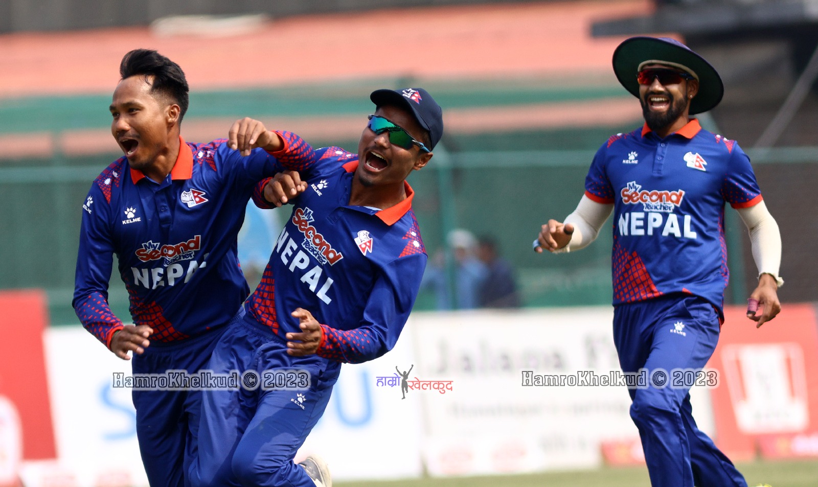 तीव्र गतिका बलर करण केसीको छैटौं ओभरको तेस्रो बलमा एज लागेर ओपनर फखार जमान विकेटकिपर आसिफ शेखबाट १४ रनमा क्याच आउट भए । सातौं ओभरको पहिलो बलमा रोहित पौडेलले डाइरेक्ट थ्रोमा इमाम उल हकलाई ५ रनमा रन आउट गरे ।
