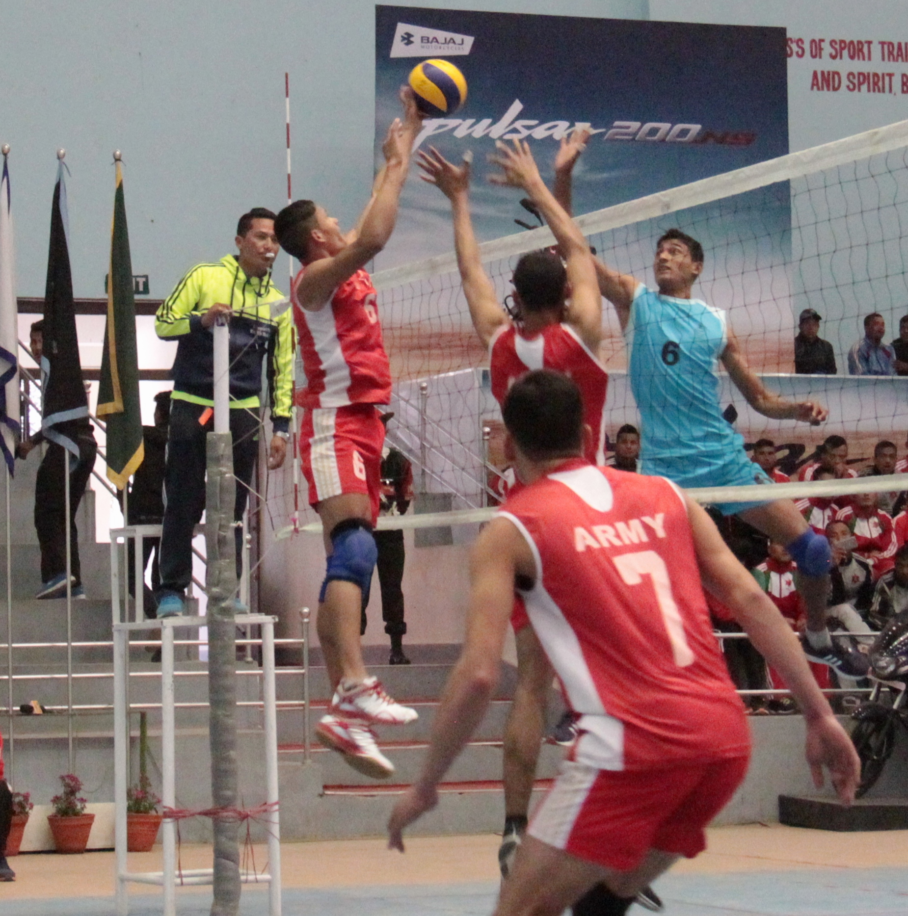 लगनखेलस्थित आर्मीको शारीरिक सुगठन तथा फिटनेस सेन्टरको कभर्ड हलमा भएका खेलमा साविक विजेता आर्मी, पुलिस र एपिएफले जित निकालेका छन् । त्यस्तै पश्चिमाञ्चलले पनि जित हात पारेको छ । दोश्रो दिनको लिग खेलमा आर्मीले मध्यपश्चिमाञ्चललाई २५–१२, २५–१५, २५–१८ को सोझो सेटमा पराजित ग¥यो ।
