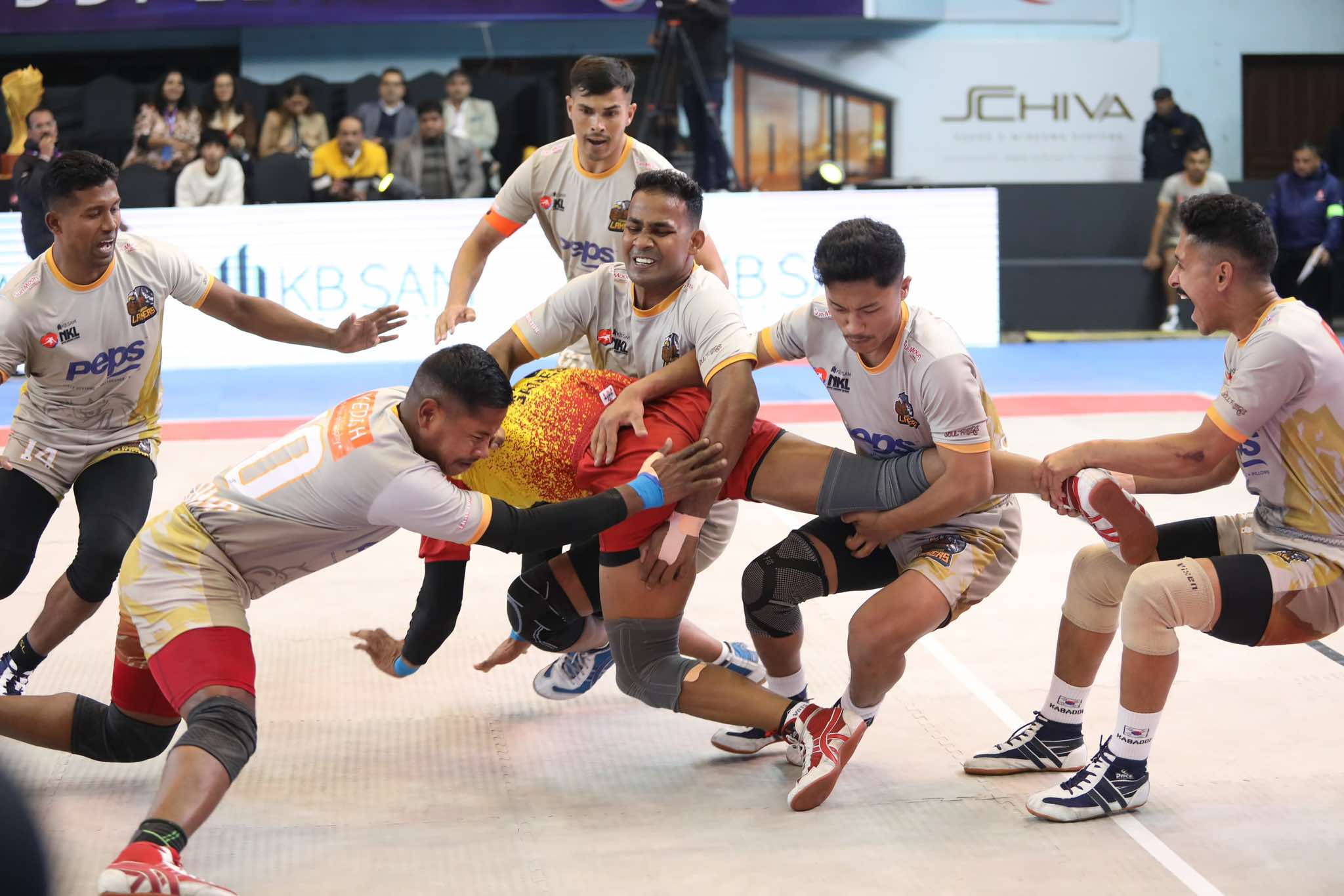 खेललाई २६-२२ मा पुर्याए। यसपछि कमब्याकको प्रयासमा रहेको पोखराले हिमालयनका खगेन्द्र राज जोशीलाई आउट गर्दै दुई अंक जोड्दा खेल २९-२९ को बराबरीमा पुग्यो। तर गणेशले सुपर रेडबाट तीन स्कोर गरेसँगै हिमालयनले पोखरालाई ३४-३० ले माथ दियो।