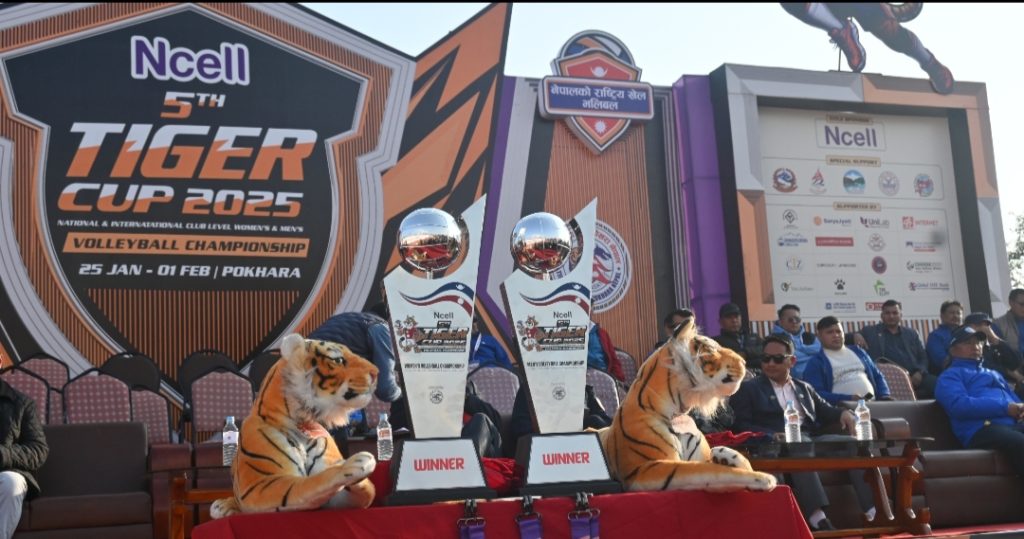 टाइगर ग्रुप अफ पोखरा नेपालको आयोजनामा हुन लागेको प्रतियोगिता माघ १९ गतेसम्म चल्नेछ । ट्रफी अनावरण गर्दै मन्त्री थापाले टाइगर ग्रुपले छोटो समयमा भलिबलको क्षेत्रमा उत्कृष्ट काम गरेको बताए । उनले खेलाडी उत्पादन र एक्स्पोजर गर्न यो प्रतियोगिताले महत्वपूर्ण भूमिका खेलेको बताए ।