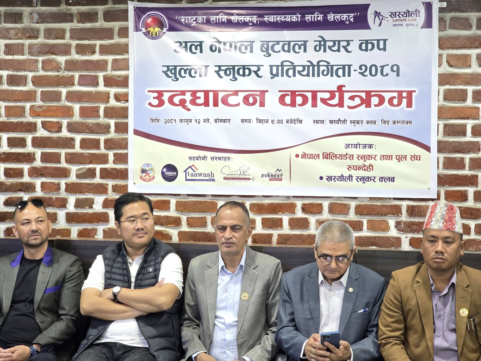 नेपाल बिलियार्ड स्नुकर एण्ड पुल एशोसियसन रुपन्देहीको आयोजनामा प्रथम अल नेपाल बुटवल मेयर कप ओपन स्नुकर प्रतियोगिता सोमवार सुरु भएको छ ।