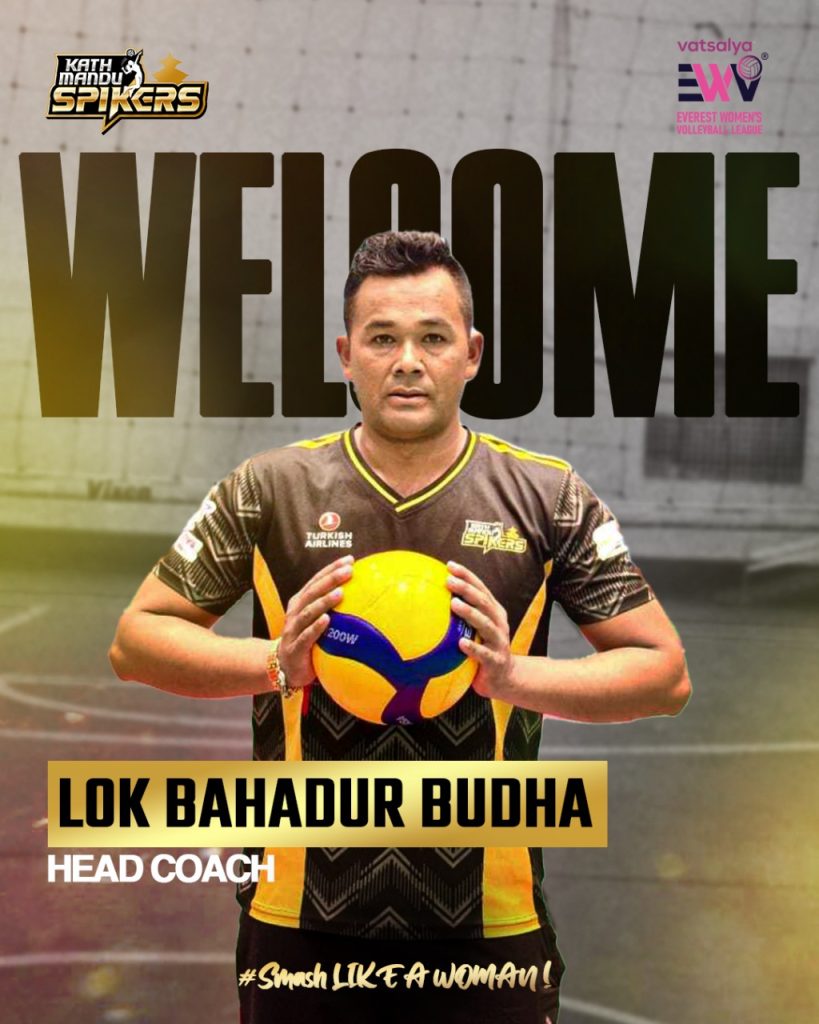 काठमाडौं (हाम्रो खेलकुद)- एभरेष्ट महिला भलिबल लिग (इडब्लुभिएल ) को फ्रेन्चाइज टोली काठमाडौं स्पाइकरको लोकबहादुर बुढालाई टोएीलाई मुख्य प्रशिक्षक नियुक्त गरेकल छ ।