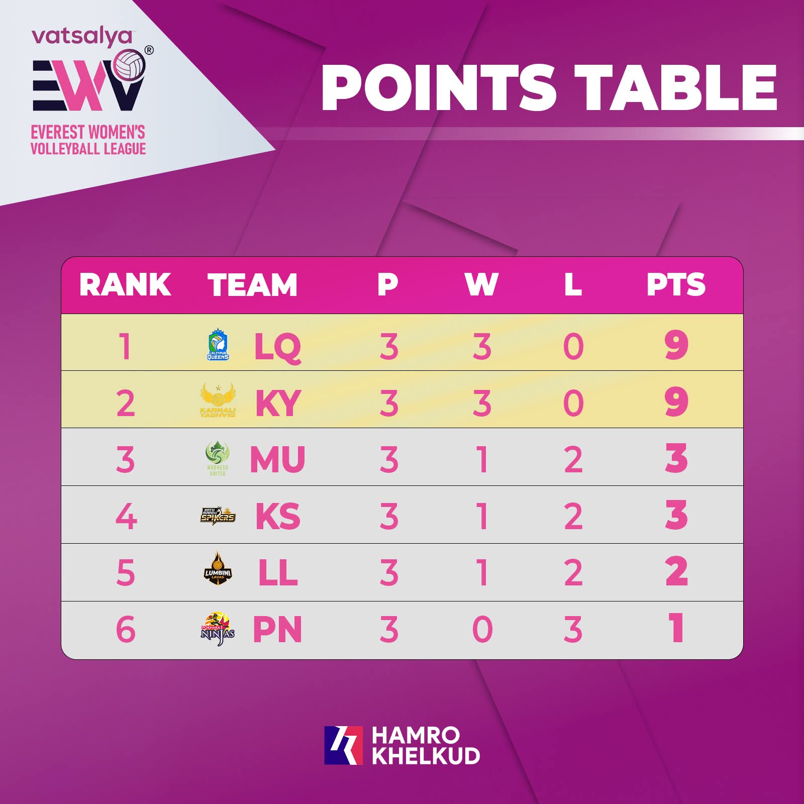 त्यस्तै साँझ ५ बजे सुरु हुने खेलमा शीर्ष स्थानको ललितपुर क्विन्स र पोखरा निन्जाजबीच हुनेछ। पोखरामा इडब्लुभीको दोस्रो संस्करण जारी रहँदा भदौं २३ र २४ को आन्दोलनका कारण स्थगित भएको थियो।