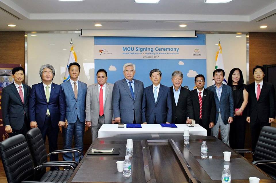 सो अवसरमा दक्षिण कोरियाका लागि नेपाली राजुदूत अर्जुनजंग बहादुर सिंहलगायतको उपस्थिती रहेको थियो । सम्झौता अनुरुप नेपाल तेक्वान्दो संघको व्यवस्थापन र सहकार्यमा अम होङ गिल फाउन्डेसनले नेपालमा विद्यालय निर्माणका साथै भत्किए विद्यालयलाई पुर्ननिर्माण गर्नेछ ।