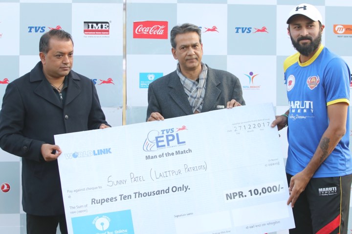 काठमाडौं (हाम्रो खेलकुद) – ललितपुर प्याट्रियट्स टीभिएस एभरेस्ट प्रिमियर लिग (इपीएल) टी–ट्वान्टी क्रिकेट प्रतियोगिताको क्वालिफायरमा प्रवेश गरेको छ ।