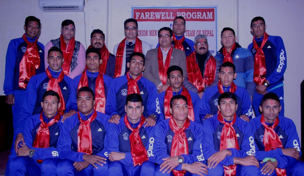 २१ सदस्यीय नेपाली भलिबल टोलीलाई प्रतिनिधि सभा सदस्य तथा नेपाल ओलम्पिक कमिटिका अध्यक्ष जीवनराम श्रेष्ठले बुधबार एक कार्यक्रमका बीच विदाई गरे । टोली बिहिबार हङकङ प्रस्थान गर्नेछ । इम बहादुर मगरको कप्तानीमा नेपाली टिमले माघ १४ र १५ गते हङकङको राष्ट्रिय टिमसँग दुई मैत्रीपूर्ण खेल खेल्नेछ । त्यस्तै मकाउको राष्ट्रिय टिमसँग माघ १७ गते मैत्रीपूर्ण खेल खेल्ने कार्यक्रम रहेको छ ।