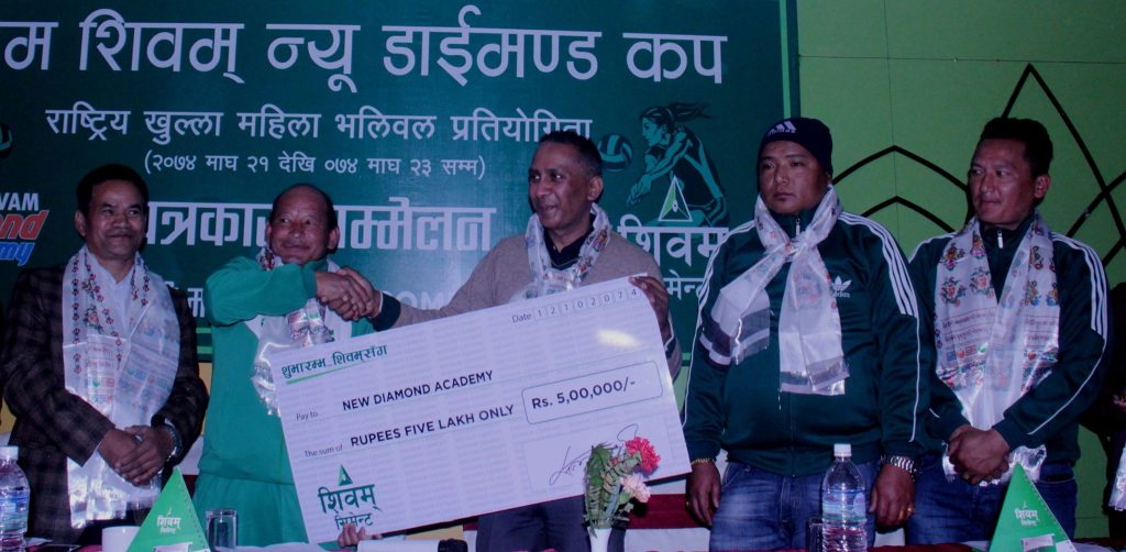 शिवम् सिमेन्टलाई मुख्य प्रायोजन पाएपछि नैकापको न्यु डायमण्ड एकेडेमीले पहिलोपटक ‘शिवम् न्यु डायमन्ड कप भलिबल राष्ट्रिय खुला महिला भलिबल’ प्रतियोगिता आयोजना गर्ने भएको हो । शिवम् सिमेन्टले न्यू डायमण्ड एकेडेमीलाई एक प्रतियोगिता आयोजना गर्न तथा अन्य सुविधाका लागि १ वर्षको लागि गत भदौमा मुख्य प्रायोजन गरेको थियो ।