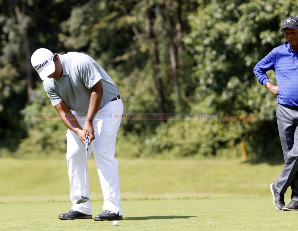 पहिलो दिनको खेलमा प्रतियोगिताको साविक विजेता समेत रहेका शिवरामले ४ अन्डर ६८ स्कोर जोड्दै अग्रता लिएका छन् । फ्रन्ट नाइनमा ५ अन्डर ३१ को उत्कृष्ट प्रदर्शन गरेका शिवरामले ब्याक नाइनमा १ ओभर ३७ खेलेपनि २ स्ट्रोकको अग्रता बनाउन सफल भएका छन् । दोस्रो स्थानमा आर्मी क्लबका धनबहादुर थापा छन् । उनले २ अन्डर ७० खेलेका छन् । एमेच्योर गल्फर पृथ्वी मल्लले पनि २ अन्डर ७० स्कोर जोडे ।