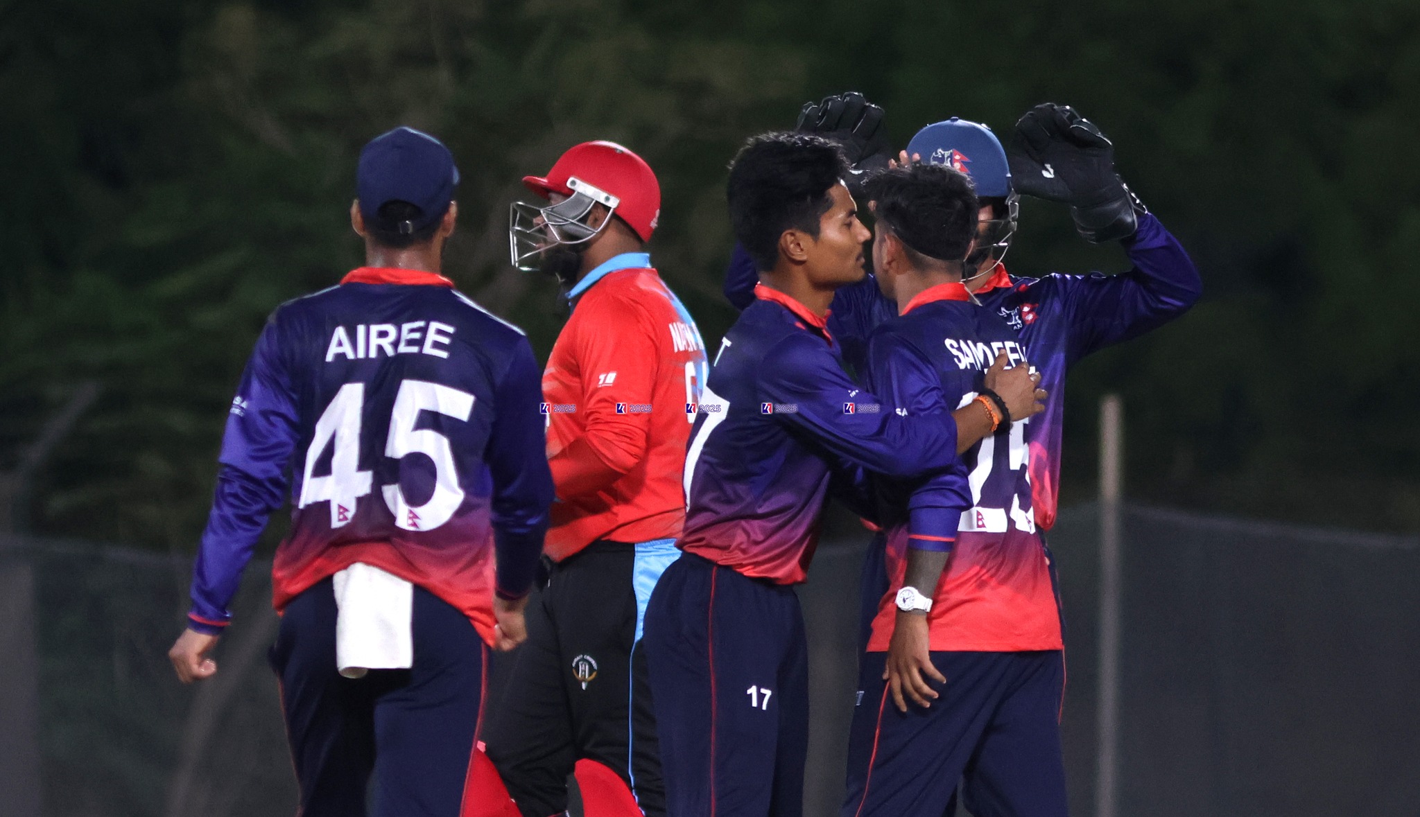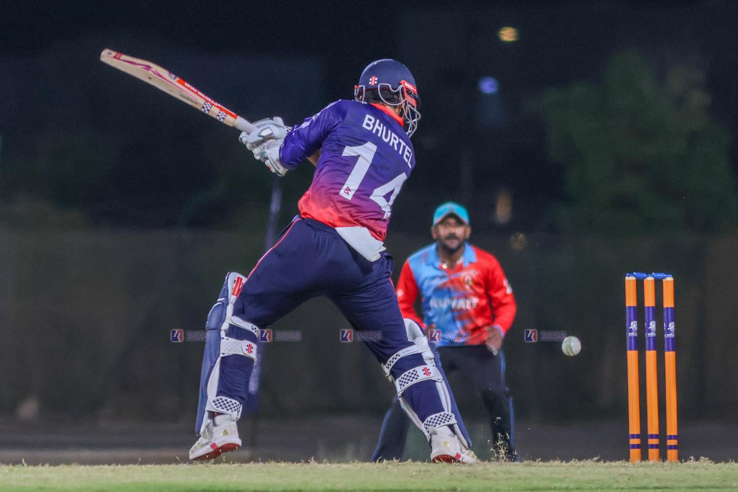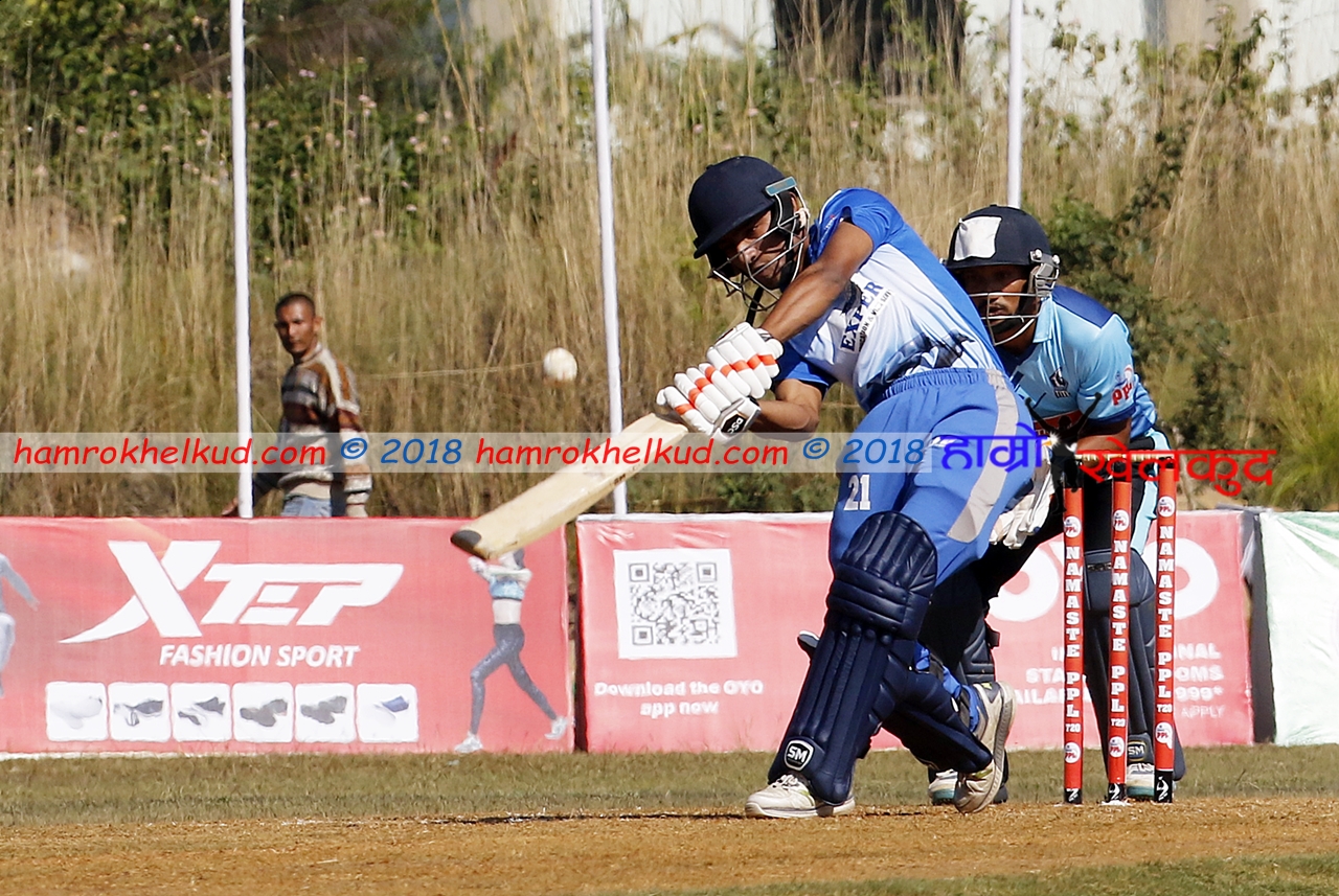 त्यसपछि कप्तान ऐरी र पिटरले चौथो विकेटको लागि ६० रनको साझेदारी गर्दै टिमको इनिङ्स उकासेका थिए । सन्दीप जोरा १२ रनमा आउट भए । रोविन क्षेत्रीले १० रन बनाए । योगेन्द्रसिंह कार्कीले ६ रन बनाए । मन्जित श्रेष्ठ १ रनमा पेभेलियन फर्किए । सौरभ खनालले अन्तिम बलमा क्याचआउट हुनुअघि १३ बलमा ४१ रन जोडे । उनले १३ बल खेल्दै २ चौका र ५ छक्का प्रहार गरे ।