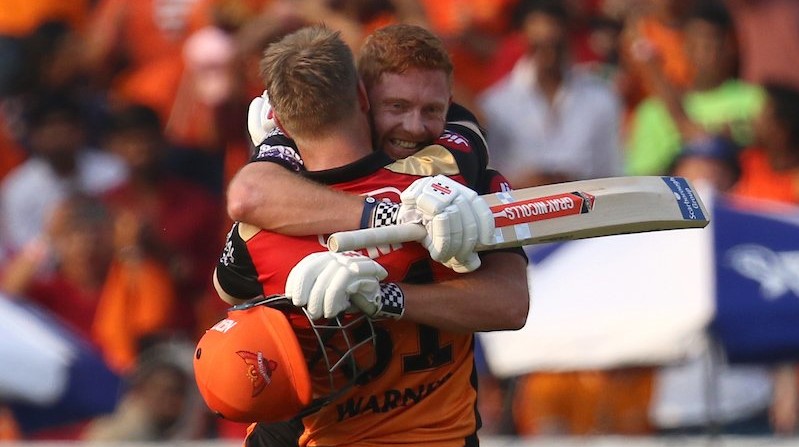 वार्नरले ५५ बलमा समान ५ चौका र छक्का प्रहार गरे । यी दुई ओपनरले पहिलो विकेटका लागि १ सय ८५ रनको कीर्तिमानी गरका थिए । पहिलो विकेटका यो आईपीएलमा अहिले सम्मकै उच्च साझेदारी समेत हो ।