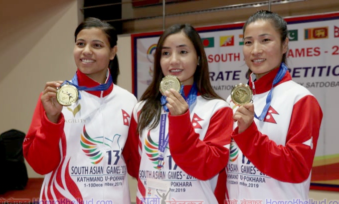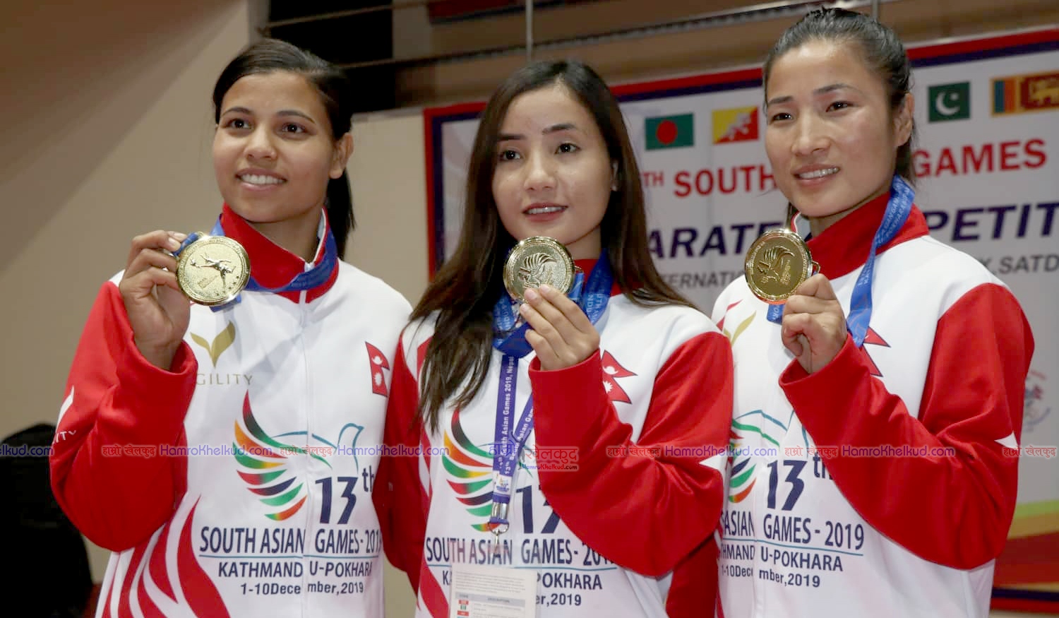 कराते (टिम काता ,महिला)– निर्मला तामाङ, संगिता मगर, सरु कार्की