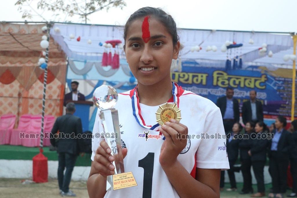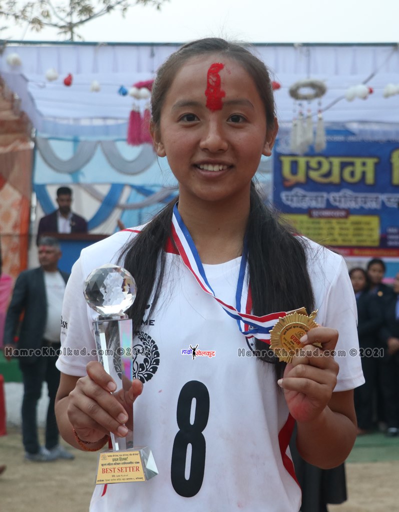न्यु होराइजन स्पोर्ट्स क्लबकी लक्ष्मी चन्द उत्कउष्ट स्पाइकर घोषित भइन् । कुँवरवर्तीकी राधा बुढाथोकी अनुशाषित खेलाडी चुनिदा कुवरवर्ती ‘बी’ की रिचा थापा उदियमान खेलाडी घोषित भए । सबै उत्कृष्टहरुले समान ३–३ हजार रुपैयाँ प्राप्त गरे ।