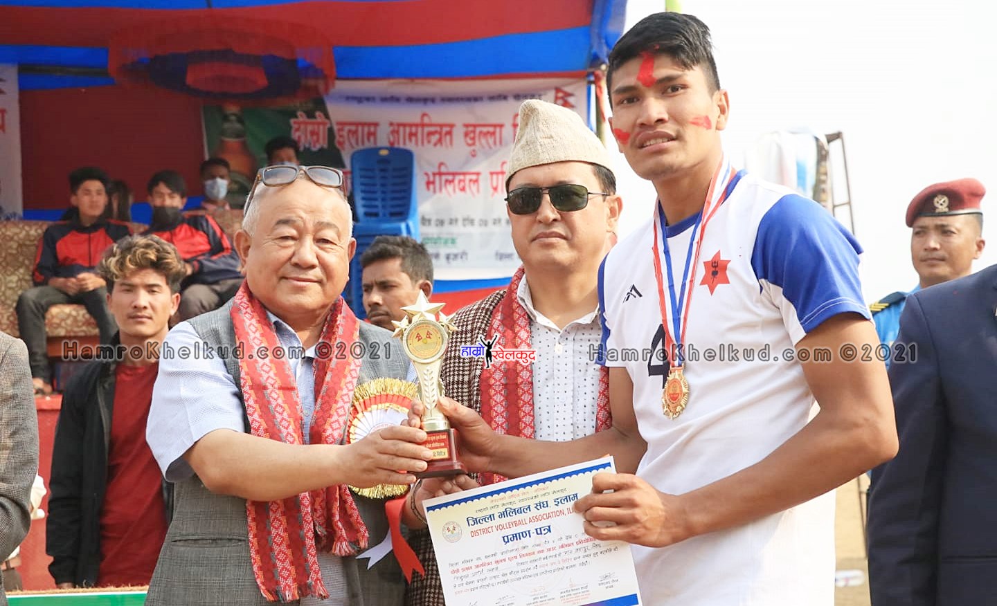 त्रिभुवन आर्मी क्लबका ओपनर स्पाइकर मानबहादुर श्रेष्ठ दोस्रो संस्करणको ईलाम आमन्त्रण खुल्ला पुरुष भलिबल प्रतियोगिता सर्वोत्कृष्ट खेलाडी चुनिएका छन् ।