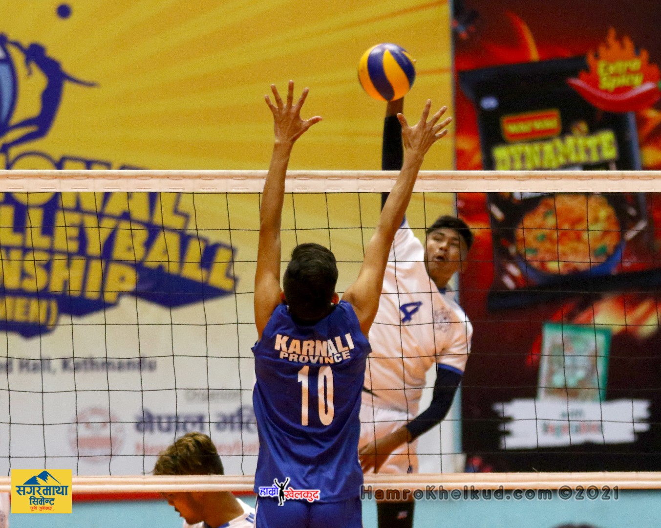 त्रिपुरेश्वरस्थित राष्ट्रिय खेलकुद परिषद् (राखेप) को कभर्डहलमा सोमबार भएको खेलमा नयाँ बजारले कर्णली प्रदेशमाथि सहज जित निकाल्दै एक खेल बाँकी छदै अन्तिम आठको यात्रा तय गरेको हो । पहिलो सेटमा २५–१८ को जित निकालेको नयाँ बजारले त्यसपछिको दुई सेट २५–१९ र २५–२१ ले जित्न सफल भयो । नयाँ बजारको जितले आर्मी पनि एक खेल बाँकी छदै क्वाटरफाइनलमा पुग्न सफल भयो । अब आर्मी र नयाँ बजारबीच समूह विजेताको लागि प्रतिस्पर्धा हुनेछ । लगातार दोस्रो हारसँगै कर्णाली प्रदेश च्याम्पियनसिपबाट बाहिरिएको छ ।