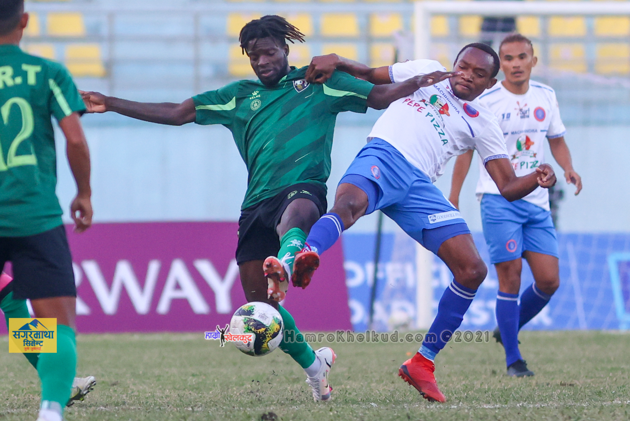 २२औं मिनेटमा सुनिल बलको प्रहारलाई एनआरटीका गोलरक्षक अजित प्रजापतिले पञ्च गर्दै बचाए । रिवाउन्डमा कप्तान सुजल श्रेष्ठको प्रहारलाई अफसाइड पोजिसनमा रहेका अभिषेक रिजालले टच गरिदिदा गोलले मान्यता पाएन । २६औं मिनेटमा स्टेफन विनोङको हेडर पासमा क्रिटिस रत्न छुन्जुको प्रहार पोस्ट नजिकैबाट बाहिरिदा एनआरटी बराबरीबाट चुक्यो ।