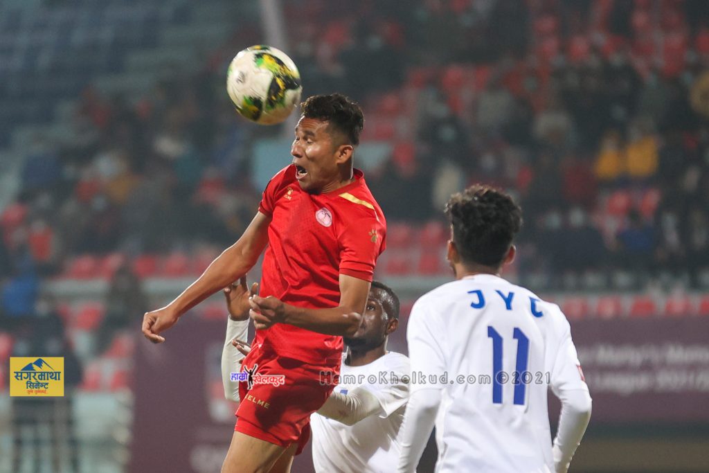 त्रिपुरेश्वरस्थित दशरथ रंगशालामा आइतबार भएको खेलमा दुवै टोलीले गोलका केही अवसर चुकाउँदा पहिलो हाफ गोलरहित बराबरीमा टुंगिएको हो । खेलको १०औं मिनेटमा अमिर श्रेष्ठको पेनाल्टी बक्सबाहिरको प्रहार शत्रुघन कुमार चौधरीले टच गर्दा जावलाखेल अग्रता लिनबाट चुक्यो ।