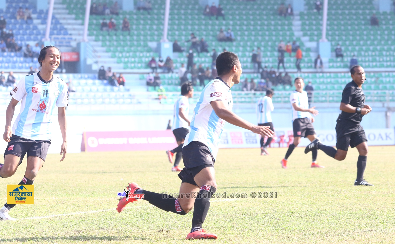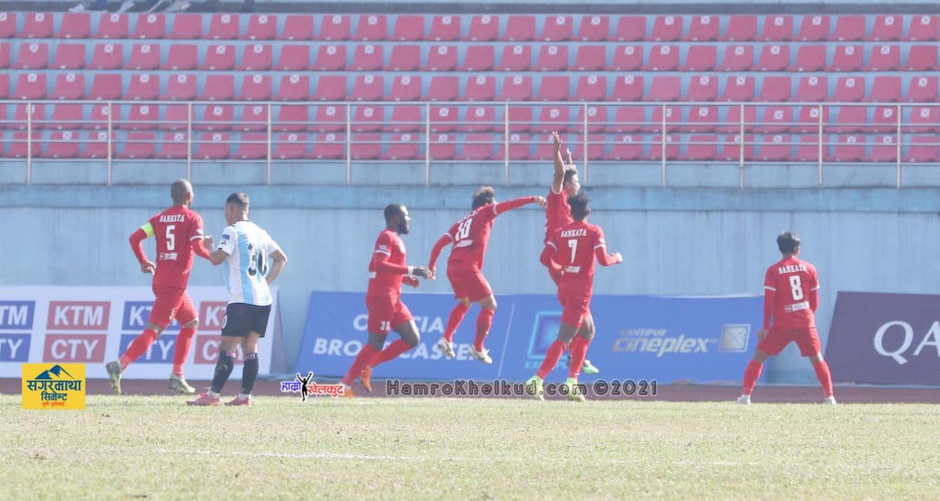 दशरथ रगंशालामा शनिबार भएको खेलको २४ औं मिनेटमा दीनेश राजवंशीको फ्रिकिक पोष्ट माथिबाट बाहिरिदाँ मनाङ अग्रता लिनबाट चुेकेको थियो । २६ औँ मिनेटमा दयानन्दको क्रसमा अफिज ओलावालेको प्रहार संकटाका डिफेन्डरले क्लियर गरिदिए ।