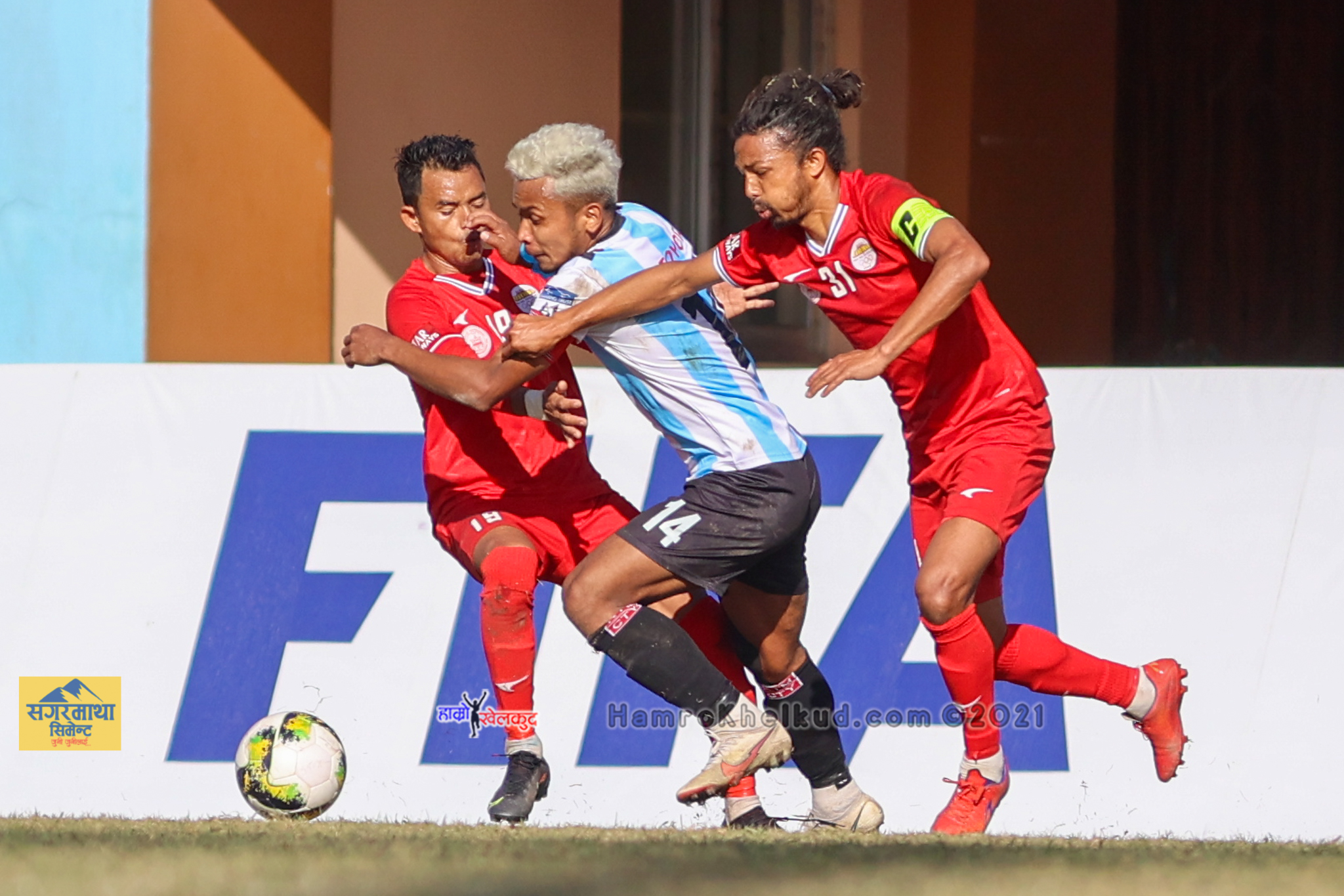 १ गोल : लक्ष्मण रुचाल, त्रिदेव गुरुङ, निशान खड्का, राफयल रिमगागो, अनन्त तामाङ, आशिष लामा, विकी तामाङ, सुरज गुरुङ, दिनेश राजवंशी, सन्तोष हेमरुन, विवेक बस्नेत, एरिक विष्ट, सुदिप गुरुङ, प्रकाश बुढाथोकी, फोडे फोफाना, ओलावाले अफिज, नाथानिल जुडे गार्सिया, मिक्चेन तामाङ, सुशिल राई, दयानन्द सिंह, उत्तम राई, फ्रान्कलिन कोटे टाला, दिपेश घले, भरत खवास, विश्वास श्रेष्ठ, र रन्जित धिमाल