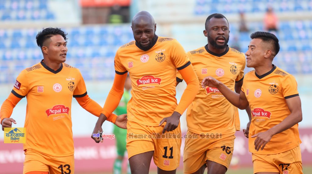 त्रिपुरेश्वरस्थित दशरथ रंगशालामा आइतबार भएको खेलको चौथो मिनेटमा मुताम्वा पिस्टोन भुनयोलीले गोल गोल गर्दै हिमालयन शेर्पालाई १–० को अग्रता दिलाएका हुन् । शिशिर लेखाीले विसन गुरुङलाई फउल गरेपछि प्राप्त फ्रिकिकमा कप्तान विश्वास श्रेष्ठको प्रहारलाई मुताम्वाले हेडरमार्फत जाली चुमाउँदा गोलरक्षक एन्जल श्रेष्ठ मुकदर्शक बने ।