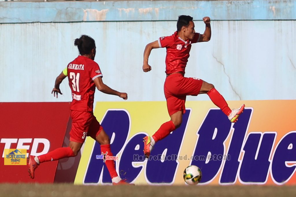त्रिपुरेश्वरस्थित दशरथ रंगशालमा आइतबार भएको खेलको १२औं मिनेटमा उत्तम राईले गोल गर्दै संकटालाई १–० को अग्रता दिलाए । जोर्डन जुनियर ओओनाको क्रसमा अनमार्क रहेका शक्तिले हेडमार्फत गोल गर्दा बिबिसीका गोलरक्षक पुर्ण चेम्जोङले रोक्ने कुनै मौका पाएन ।