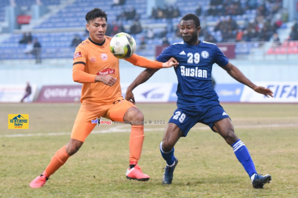 खेलको १९औं मिनेटमा अन्सुमाना क्रोमाहको पेनाल्टी बक्सभित्रको प्रहार फितलो बन्दा हिमालयन शेर्पाका डिफेन्डरले ब्लक गर्दै बचाए । २९औं मिनेटमा हेमन्त थापा मगरको कर्नरमा राफायल रिमगागोको हेडरलाई गोलरक्षक दीप कार्कीले दोस्रो प्रयासमा टप कर्नरबाट नियन्त्रणमा लिदा थ्री स्टार अग्रता लिनबाट चुक्यो ।