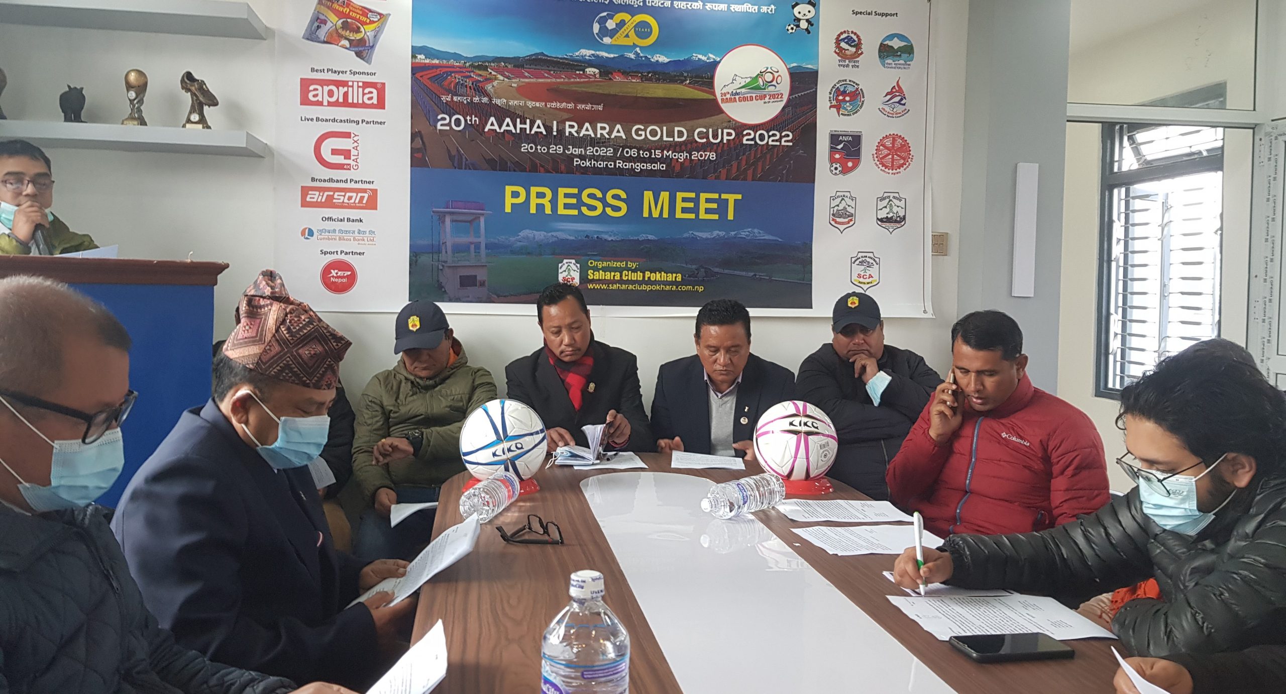 सहाराले माघ ६ गतेबाट १५ गते सम्म २० औं संस्करणको आहा ! रारा गोल्डकप फुटबल प्रतियोगिता प्रतियोगिताको आयोजना गर्दैछ । सोमबार पत्रकार सम्मेलन गर्दै प्रतियोगिता आयोजनाको सम्पूर्ण तयारी भएको महासचिव रामजीप्रसाद अधिकारीले जानकारी दिए । उनका अनुसार प्रतियोगिता तोकिएकै समयमा हुनेछ ।