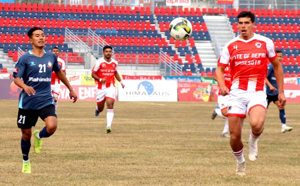 ६९ औं मिनेटमा एपिएफले आवास लामिछानेको पेनाल्टीमार्फत खेल बराबरीमा ल्यायो । ६ यार्ड बक्सभित्र अर्मान्ड बदोममाथि फल भएपछि रेफ्री नविन्द्र महर्जनले विभागीय टोलीलाई पेनाल्टी दिएका थिए । आवासले उक्त पेनाल्टीमा गोल गर्दै खेल १-१ को बराबरीमा ल्याए ।